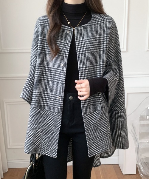 参考商品名:ビックシルエットチェック柄ドルマン ポンチョ